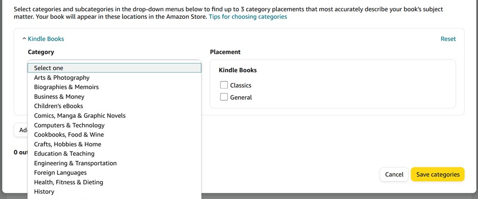 Choose Different Categories for the Kindle Edition